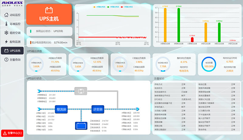 近期我司有幸為本項目設(shè)計了一套UPS不間斷電源系統(tǒng),系統(tǒng)內(nèi)設(shè)備包含:20KVA高頻UPS主機1臺、12V200AH蓄電池64節(jié)、配套電池柜2套、制冷量12.5KW精密空調(diào)1臺、配套動環(huán)系統(tǒng),以及3臺服務(wù)器機柜。所有設(shè)備現(xiàn)均已供貨安裝完成,開機調(diào)試成功。
