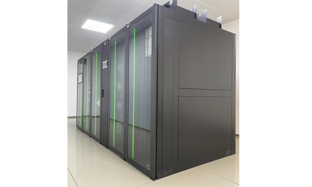 江蘇省鹽城天森機器人項目信息化建設采用微模塊機房建設,為保證系統的穩定供電,避免停電等突發事件對業務的影響,引入UPS不間斷電源系統是至關重要的。信息機房采用安德力士GLV單排微模塊系統1套,系統使用行間空調1臺。單排微模塊機柜的制冷模塊,采用靠近熱源的列間空調,和標準機柜一體化設計。柜體采用全封閉設計,冷熱通道分離;空調采用后進風,前出風90°左回風的方式,送風距離短、循環風阻小,大大提高制冷效率,實現高密度制冷。
